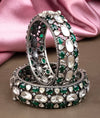 925 Silver Victorian Green Stone Bridal Bangles for Women