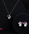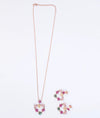 Gulab Enamel & CZ Rose Silver Pendant Set
