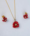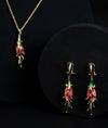 Japa Enamel Flower Gold Plated Silver Pendant Set