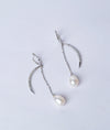 Lunara Gleam Crescent Drop CZ Silver Long Earrings
