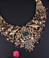 925 Silver Antique Peacock Floral Temple Necklace Set