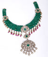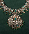 Amara Aabharana Emerald Drop Victorian Silver Necklace