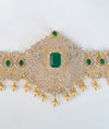 Zarreen Minimalist CZ Silver Oddiyanam with Emerald Accents