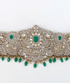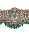 Elegant Emerald & Kundan Charm Victorian Silver Oddiyanam
